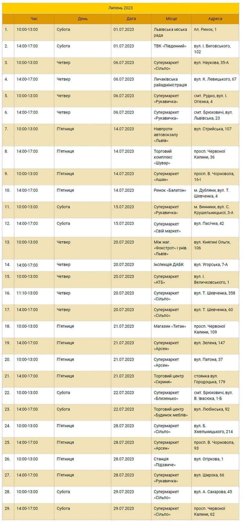 У Львові оприлюднили графік мобільних пунктів збору відпрацьованих люмінесцентних ламп, термометрів і батарейок. Їх можна здати від 1 по 31 липня.