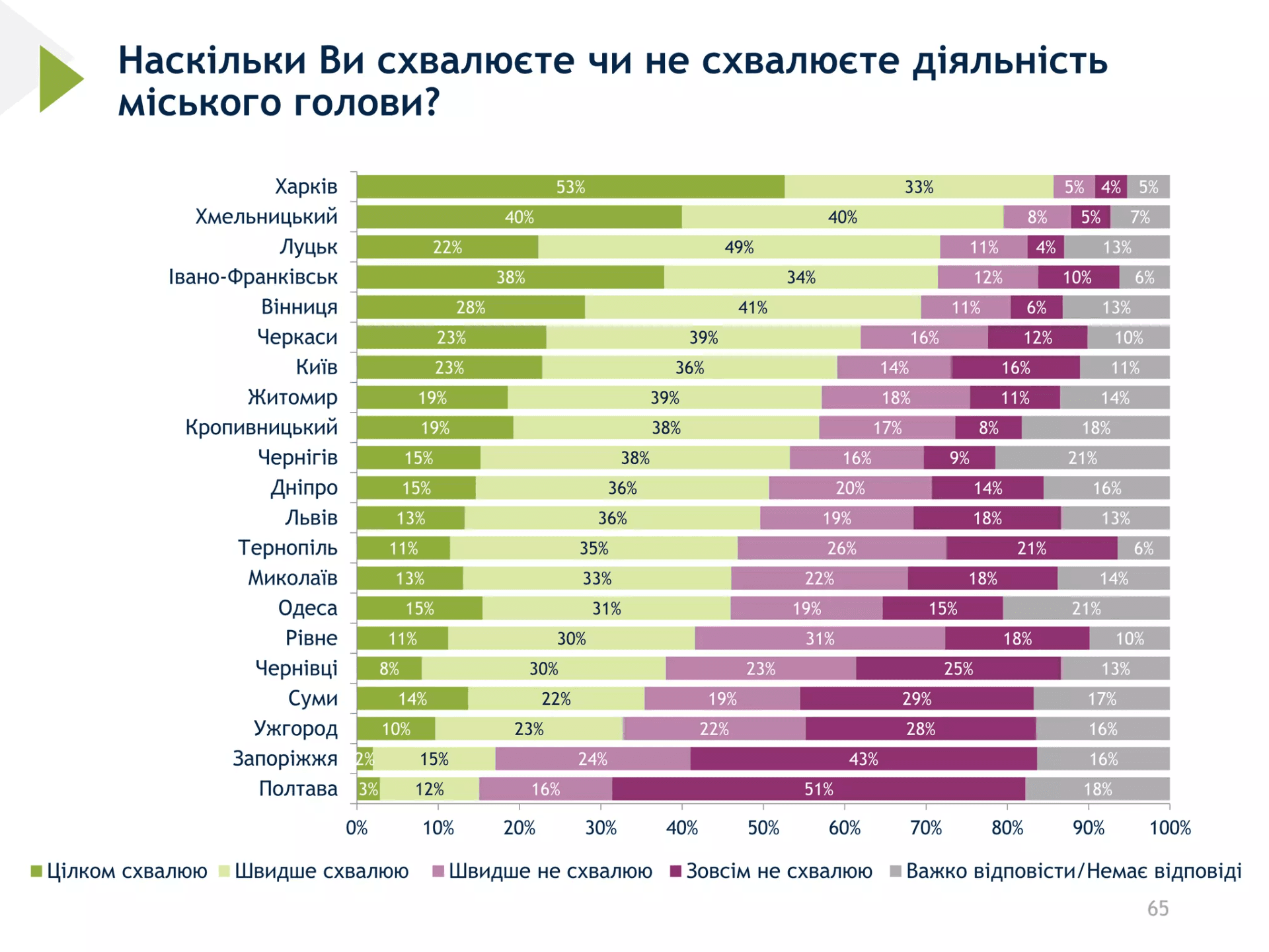 В загальному рейтингу Андрій Садовий опинився на 12 місці. За схваленням мешканців очолюють рейтинг голови Харкова, Хмельницька та Івано-Франківська.