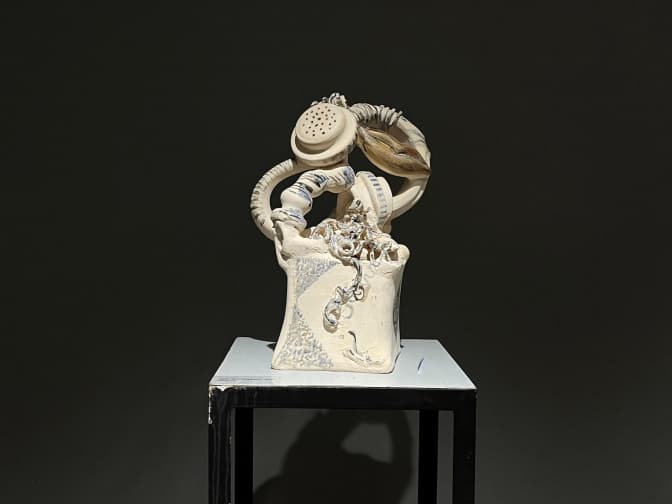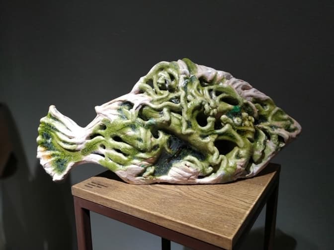 В експозиції представлені твори мисткині із різних серій: скульптури-телефони, які з початком повномасштабної війни набули нових сенсів, абстрактні композиції, що вражають вигадливістю форм, та серія «Херсонські мотиви», присвячена зображенням риб.