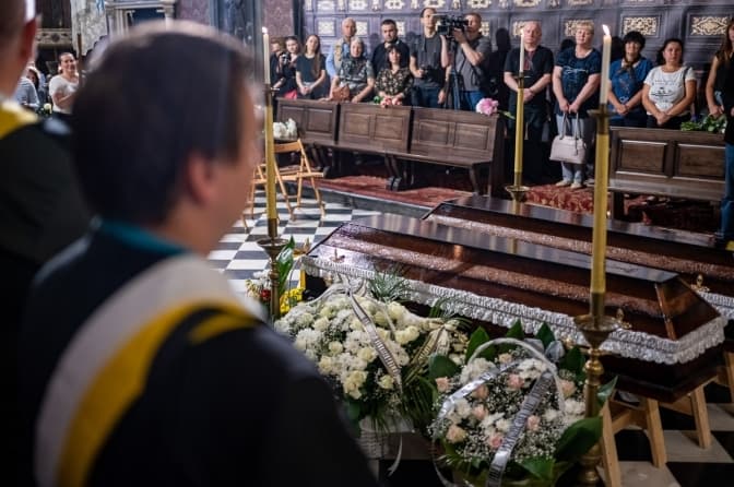 Сьогодні, 8 липня, у Львові відбулося прощання із Анастасією Сенів та Мирославою Садовою. Матір з донькою загинули внаслідок ракетного удару по житловому будинку. Чин похорону відбувся у Латинському катедральному соборі. Мар з доньою поховали на Голосківському кладовищі.