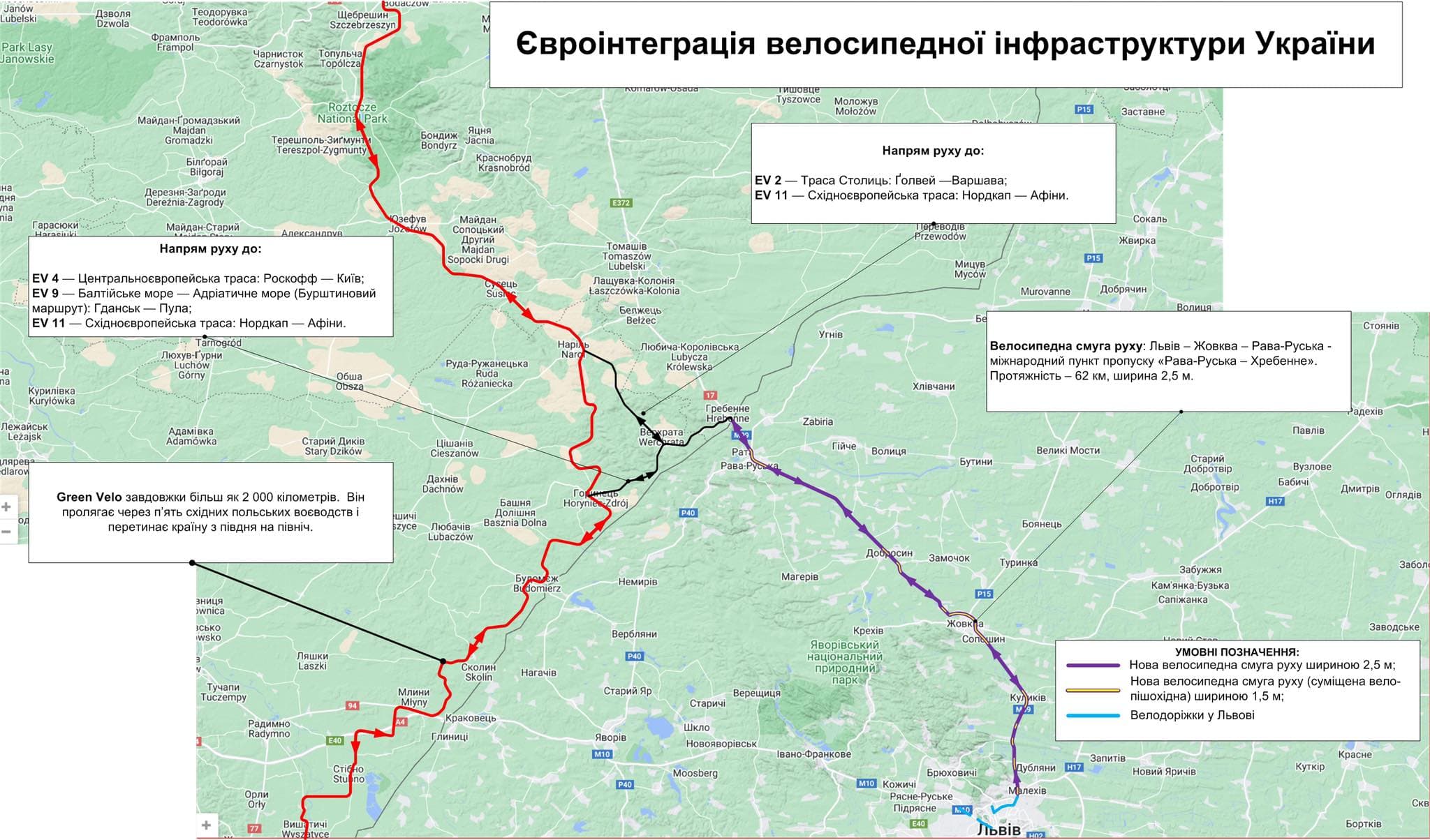 «Ще один важливий нюанс. Велодоріжка від Львова до Жовкви, а нині активно обговорюється, щоб її зробили до Рави-Руської, особливо актуальна в межах ЄвроВело. Це європейська мережа магістральних велосипедних сполучень, розроблена європейською федерацією велосипедистів і яка сполучає країни Європи між собою», – розповів в.о. начальника управління вуличної інфраструктури Павло Сирватка.