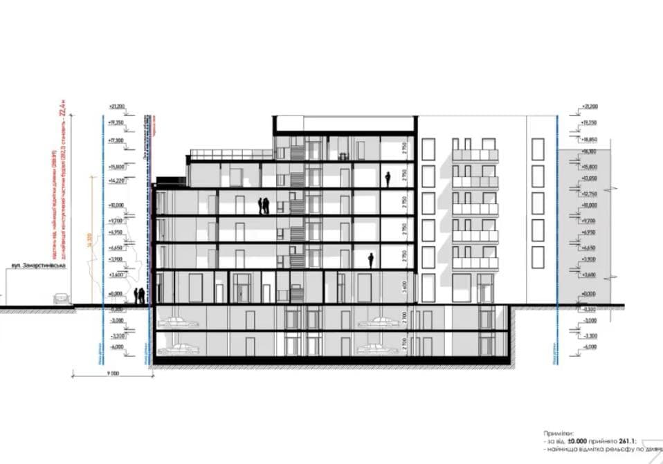 У забудові передбачили 42 квартири та 48 паркомісць – більшість з них будуть підземні.