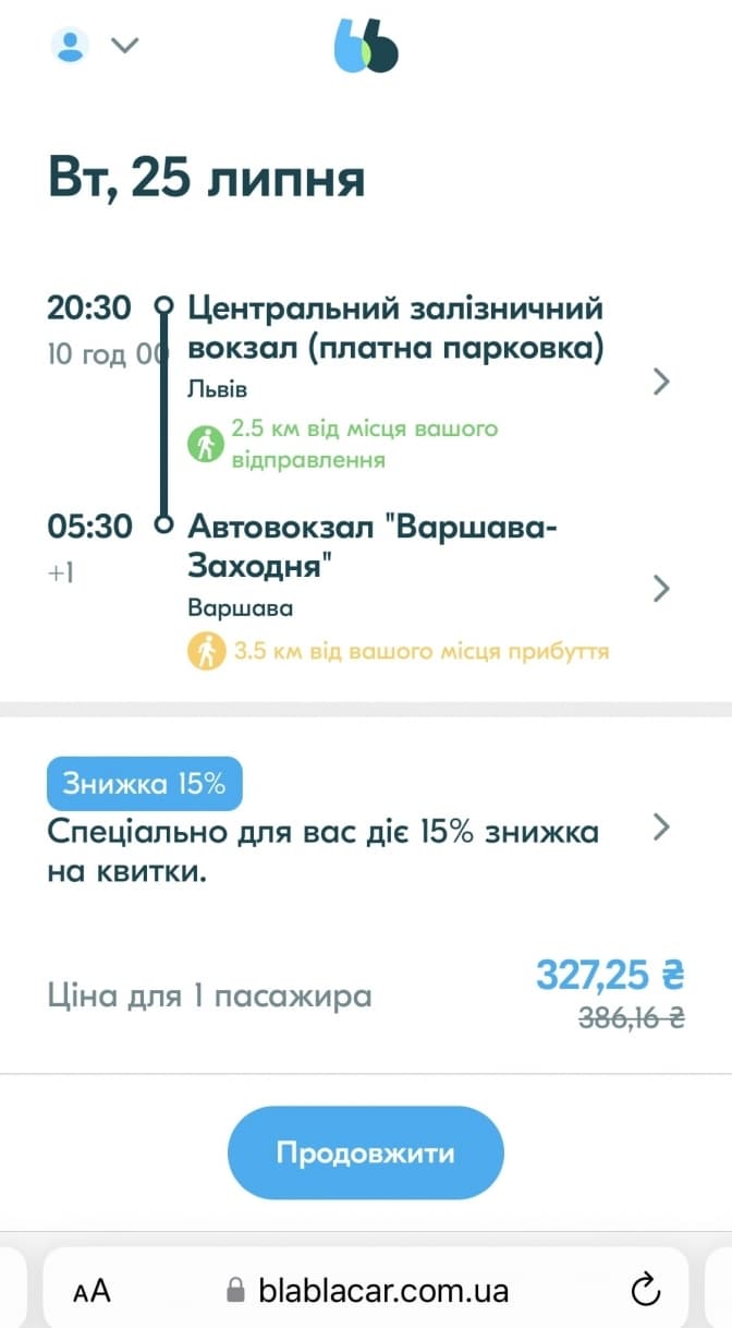Замовити квитки зі знижкою можна на сайті BlaBlaCar або в застосунку до 7 серпня 2023 року.