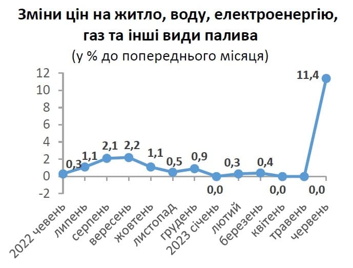 У житлово-комунальній сфері на 69,7% збільшилися тарифи на електроенергію. Матеріали для утримання і ремонту житла подорожчали на 0,6%.