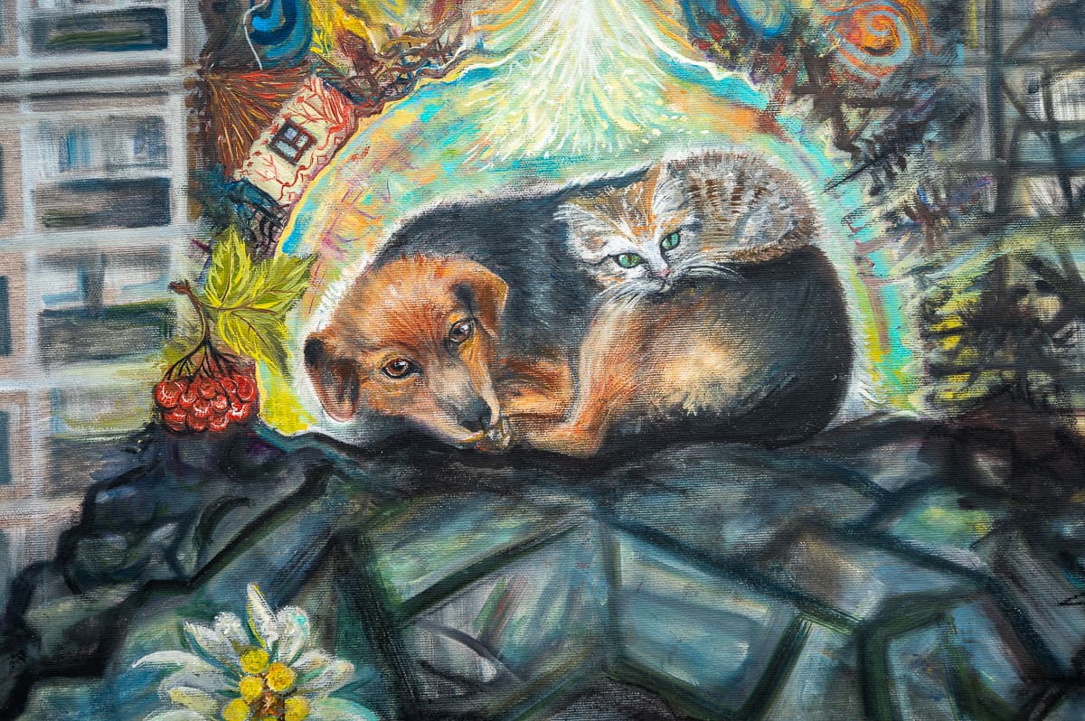 Об’єднання художників «НеВидумки» презентувало виставку «Тварини війни». Її мета – привернути увагу до проблем тварин в умовах війни. Виставка складається з 18 картин, які створили 11 художників із різних куточків країни.
