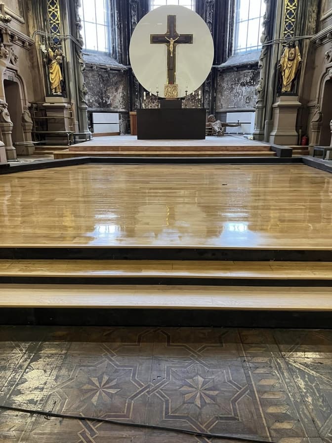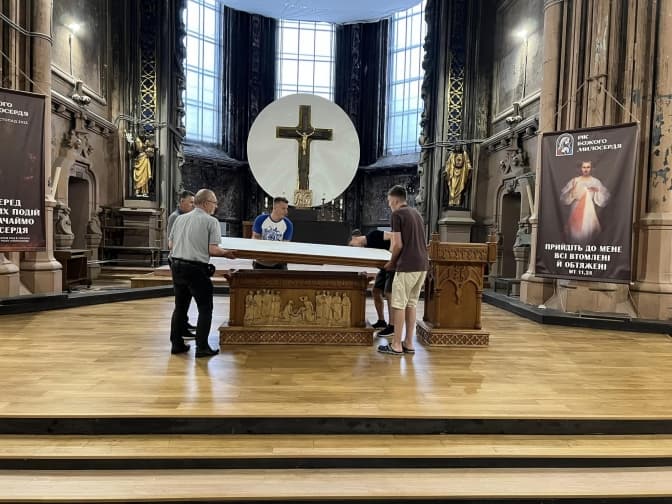 «Після пожежі 2021 року – це [вівтар – прим.] найважливіше місце у храмі, на жаль, у найплачевнішому стані. Бо саме тут за радянської влади, у 1979-му комуністи встановили свій орган, який і став причиною пожежі», – йдеться у дописі парафії.
