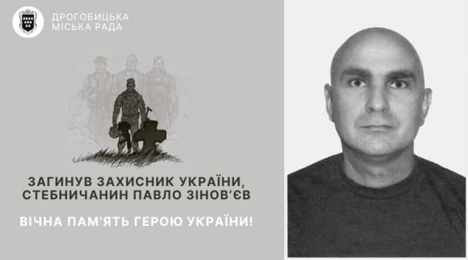 На війні загинув захисник України, стебничанин Павло Зінов’єв. Він отримав мінно-вибухову травму, несумісну з життям. Про це повідомила пресслужба Дрогобицької міської ради.
