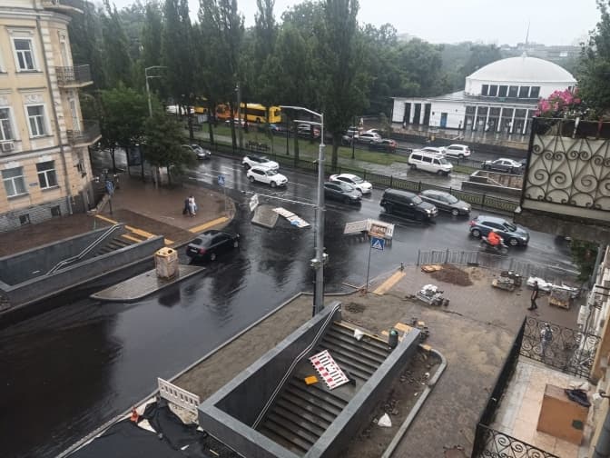 У центрі Києва, на вулиці Пирогова після капітального ремонту не встановили зливостоки, оскільки при проєктуванні вулиці там не передбачалася дощова каналізація. Про це повідомили в Департаменті транспортної інфраструктури КМДА у відповіді на запит «Твого міста».