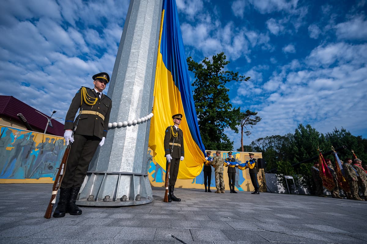 На цю ж тему: На найвищому стяготримачі Львівщини підняли державний прапор України. Фото. Біля Нацакадемії розміщений флагшток заввишки понад 50 метрів, на якому сьогодні замайорів дванадцятиметровий український прапор.
