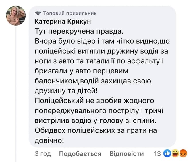 Ввечері 29 серпня у соціальних мережах інформація щодо застосування правоохоронцем табельної зброї, що призвело до загибелі людини набула гучного розголосу. У мережі вирує дискусія: чимало українців підтримують позицію патрульного, деякі – засуджують.