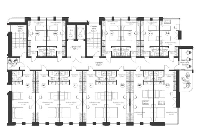 Також передбачено спеціальний безбар'єрний поверх для розміщення сімей з маломобільними дітьми.