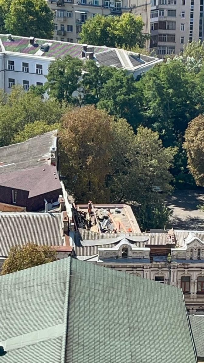 Нагадаємо, власника, який почав зводити надбудову на даху пам'ятки архітектури на вулиці Володимирській 4, зобов'язали демонтувати конструкцію.