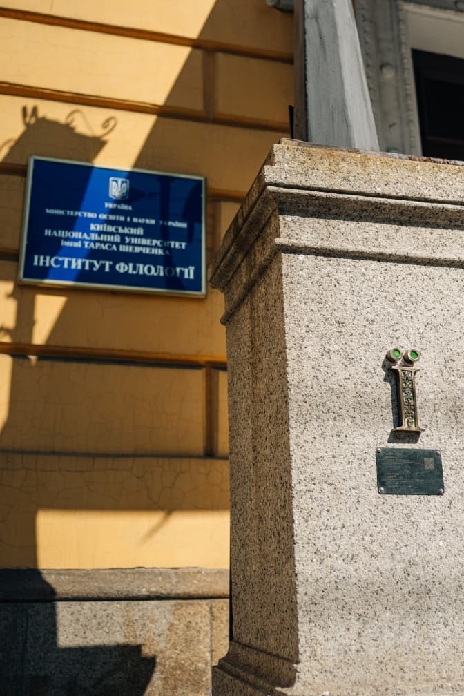 Скульптурка розміщена у місці, тісно пов’язаному з українськістю, філологією – на вході до корпусу Навчально-наукового інституту філології КНУ імені Тараса Шевченка.