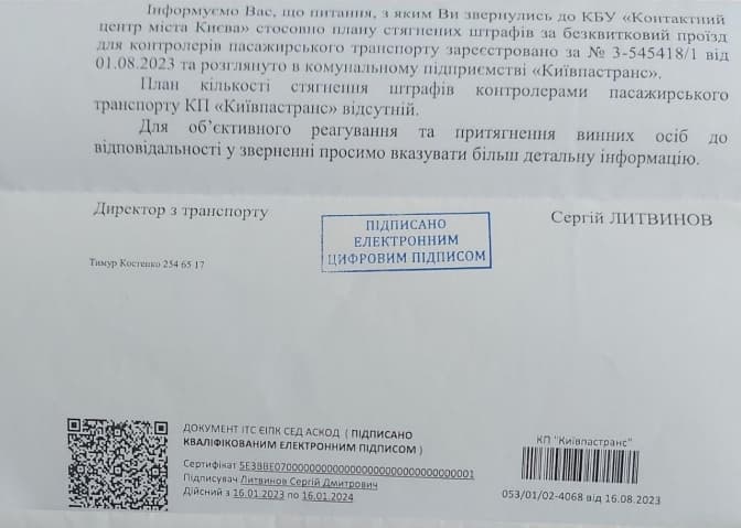 У контролерів є щоденний план штрафування безбілетників, хоча офіційно в «Київпастрансі» це не визнають. Про це свідчать документи, опубліковані спільнотою «Пасажири Києва».