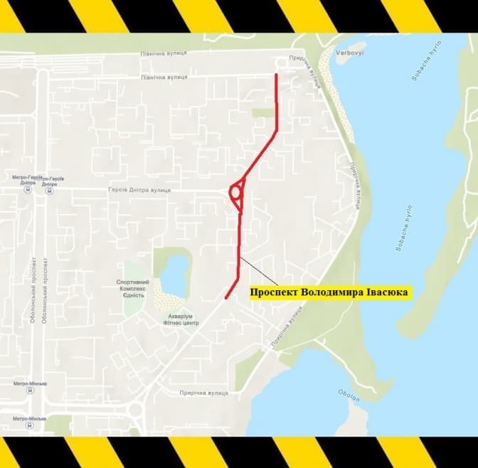 Роботи виконуватимуть із частковим перекриттям руху двома смугами на наступних ділянках: 19 вересня – у напрямку від вул. Північна до вул. Героїв Дніпра, від вул. Героїв Дніпра до просп. Володимира Івасюка, 47 (НВК «Школа I ступеня - гімназія «Потенціал» Оболонського району м. Києва»); 20 вересня – на кільці вул. Героїв Дніпра; 21 вересня – у напрямку від просп. Володимира Івасюка, 47 до вул. Героїв Дніпра, від вул. Героїв Дніпра до вул. Північна.