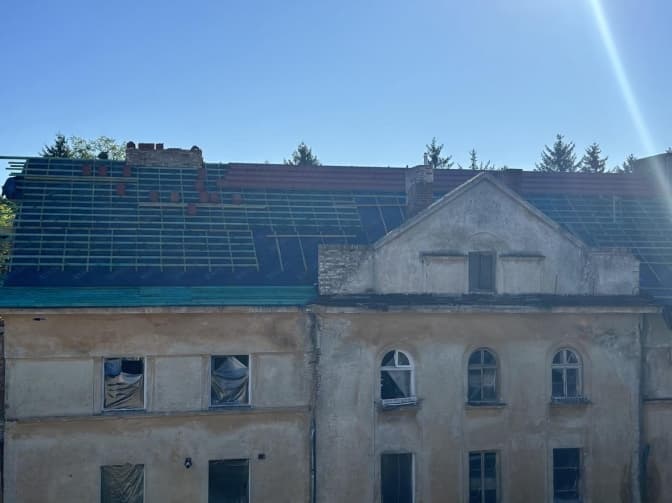 - Будинок №66 – облаштували стіни верхнього поверху. Їх довелося відмуровувати, адже вибухова хвиля поверх практично знесла. Далі будівельники братимуться за дах, який теж будуть перекривати черепицею.