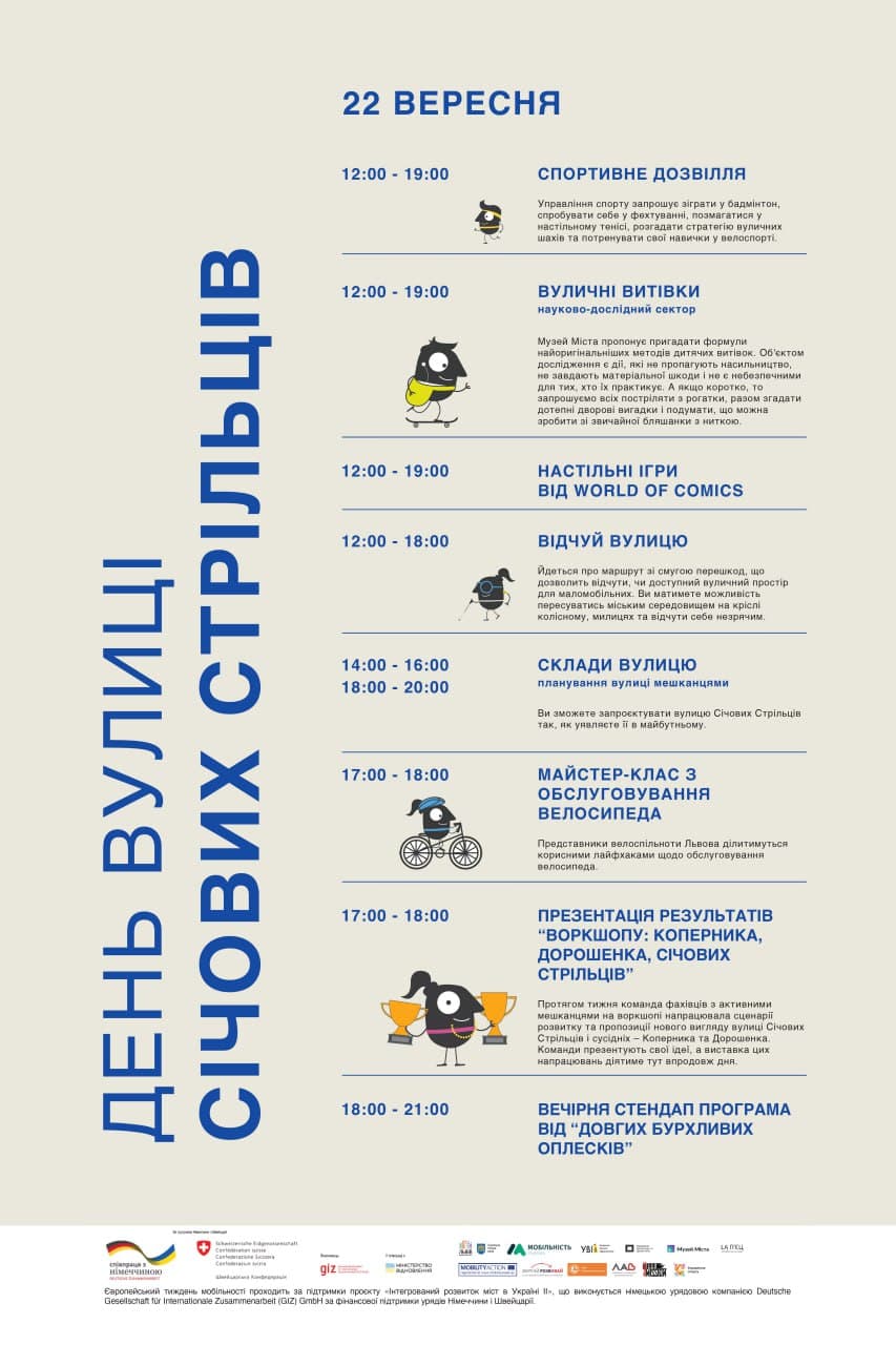 Зазначимо, що у цей день вулиця Січовий Стрільців функціонуватиме як міський простір із активностями, воркшопами, презентаціями, стендапами, відпочинковими зонами тощо.