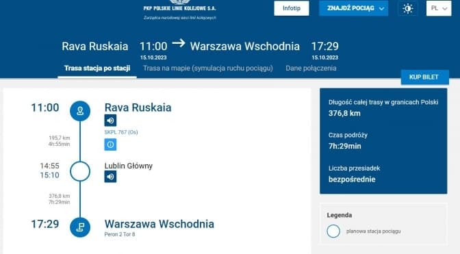 Залізничне сполучення Рава-Руська-Варшава запрацює з 15 жовтня 2023 року. Маршрут вже офіційно внесено до розкладу руху польських залізниць.