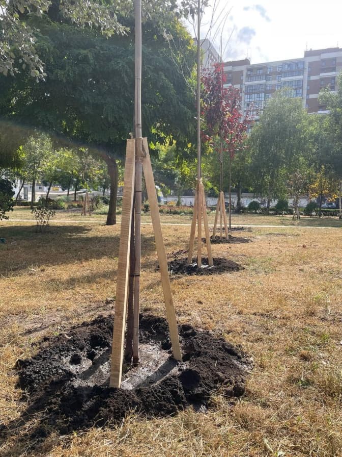 Сквер на Виноградарі прикрашають три десятки нових дерев