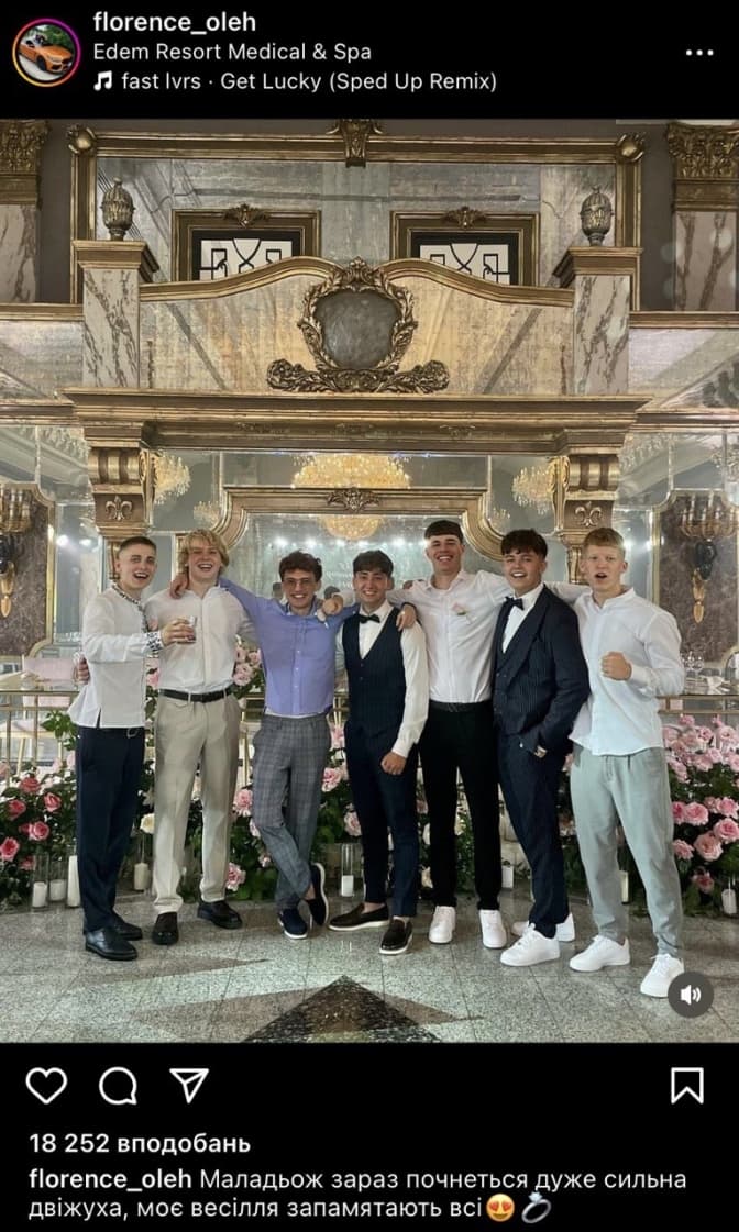 Один із підозрюваних в організації «п'яних вечірок», де знущалися з дівчат, відсвяткував гучне весілля в одному з найдорожчих курортів країни, який розташований біля Львова. Ведучим на святі був телеактор і комік Юрій Ткач. Про це повідомив журналіст Андрій Лохматов.