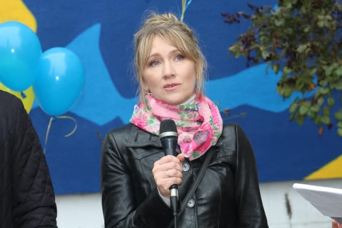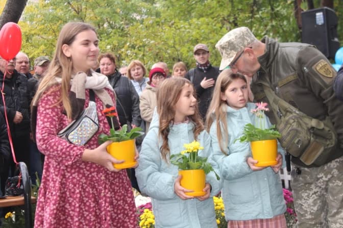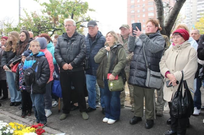 На відкриття муралу прийшли військові, місцеві жителі, а також дружина загиблого воїна Юлія Мовчан.