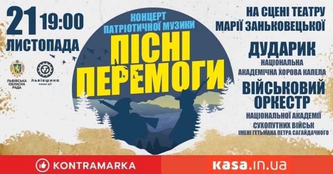Хорова капела «Дударик» разом з естрадно-симфонічним оркестром Національної академії сухопутних військ запрошують львів’ян на концерт «Пісні Перемоги». Він відбудеться 21 листопада о 19:00 в Театрі Заньковецької. Про це повідомили у пресслужбі Львівської національної академічної чоловічої хорової капели «Дударик».