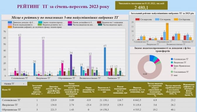 У департаменті фінансів зазначили, що при формуванні рейтингу брали до уваги рівень дотаційності бюджетів громад, власні надходження у розрахунку на одного мешканця, видатки розвитку, видатки на утримання апарату.