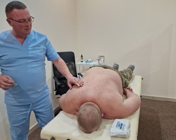 «Я дуже добре бачив, що поруч із суто військовою специфікою, такою, як різні поранення, акубаротравми (контузії), дуже поширеними були травми чи пошкодження хребта, спини, опорно-рухового апарату. Це пов’язано з надскладними умовами, в яких наші хлопці та дівчата несуть службу. Вони завжди мусять носити важкі бронежилети, перебувати в окопах. Все це призводить до того, що дуже багато військових мають проблеми зі спиною», – розповів Олег Заяць.