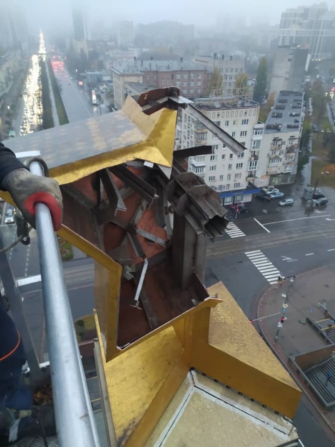 Зірку знімали частинами з висоти 42 метри. Для демонтажу використали спецтехніку. Комунальники також заручилися підтримкою рятувальників ДСНС.