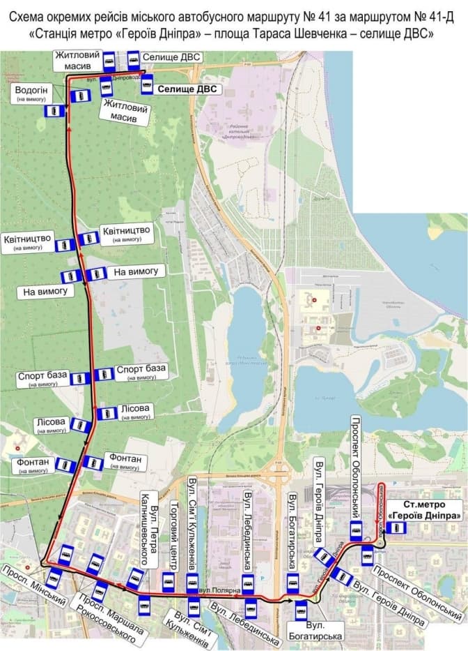 Із середи, 15 листопада, у Києві автобусний маршрут № 41-Д курсуватиме зі змінами. Схему руху склали з урахуванням результатів вивчення пасажиропотоку для покращення транспортного обслуговування пасажирів. Про це повідомили у КМДА.