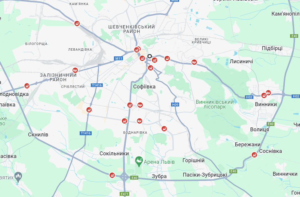 Згідно з данними Google maps, оминати також варто вулиці Личаківську, Наукову та Мельника. Також рекомендуємо оминати приміські дороги такі як кільцеві трасу в районі с. Сокільники та автошлях Т-1416.