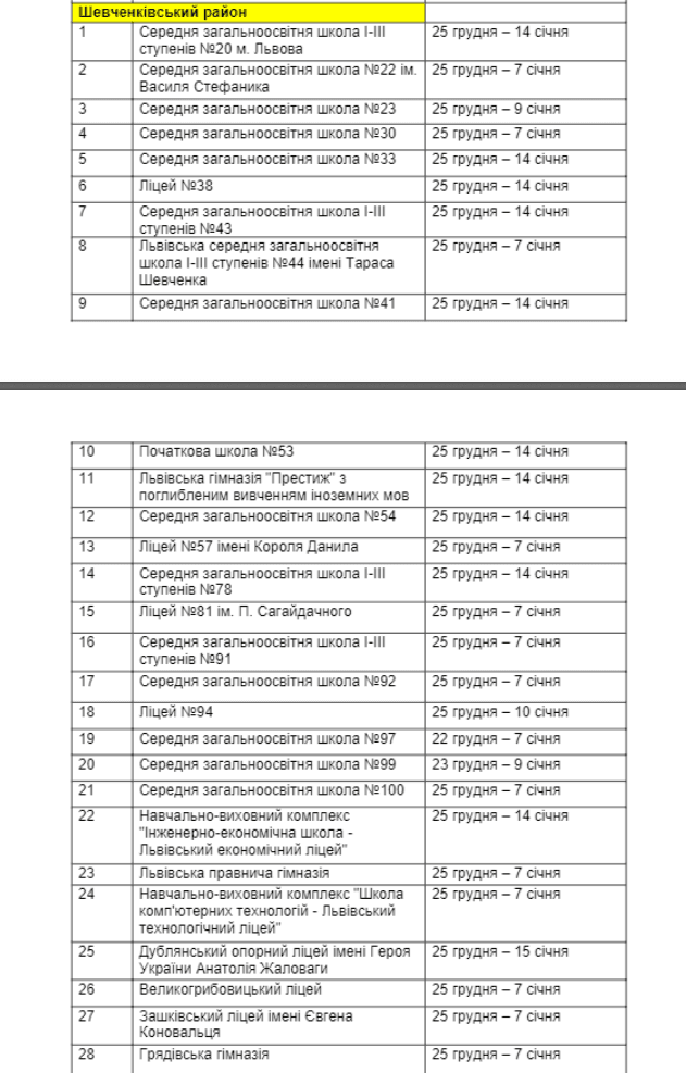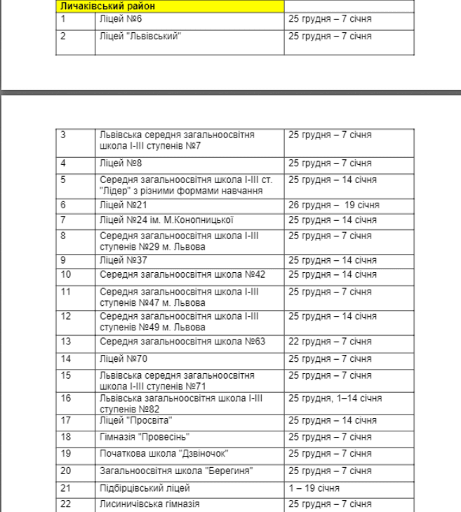 З детальною інформацією, коли в кожному з навчальних закладів будуть зимові канікули, можна ознайомитись нижче.