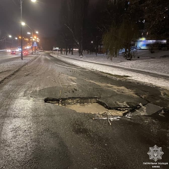 У пʼятницю, 8 грудня, у столиці трапилась аварія на тепломережі. Через це провалилось покриття проїжджої частини вулиці. Про це повідомили у Патрульній поліції Києва.