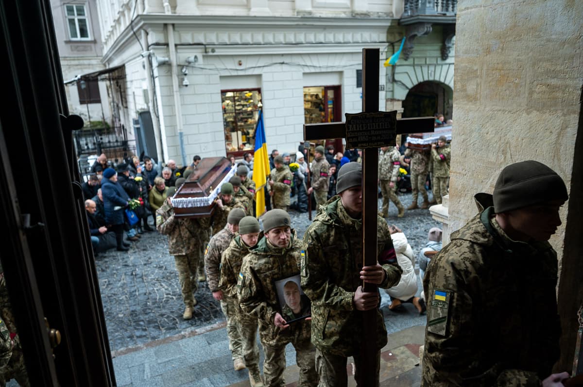 Львів попрощався з військовослужбовцями Миколою Дмитришиним, Михайлом Кострубою та Костянтином Мироновим. Вони загинули, захищаючи Україну від російських окупантів. Ховають воїнів на Личаківському кладовищі.