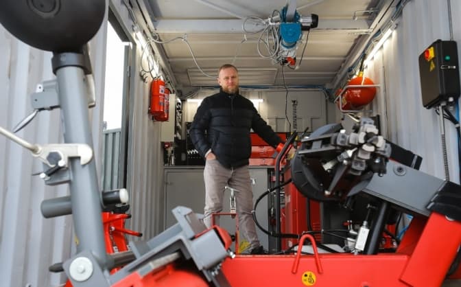 Другий модуль — це шиномонтажний комплекс. В ньому можна проводити всі роботи з шинами і колесами: рівняти диски, бортувати, балансувати. І найголовніше - шиномонтаж абсолютно незалежний від тягача. Знімний контейнер — забезпечений дизельним генератором на 10 кВт і може виконувати свої функції навіть в чистому полі.