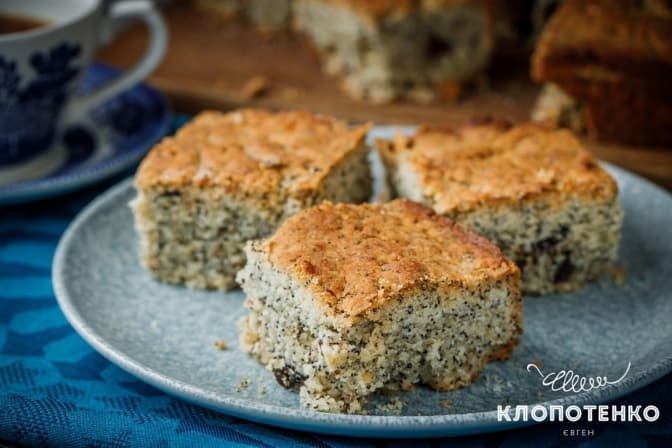 Інгредієнти: 400 мл олії, 200 мл води, 200 г цукру, ⅓ ч.л. солі, 2 ч.л. ванільного цукру, 100 г маку, 2 ч.л. кориці, 150 г чорносливу, 800 г борошна, 4 ч.л. розпушувача.
