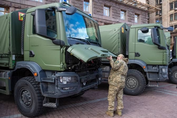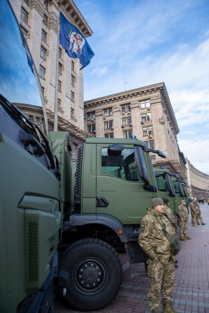 Київ передав бійцям 241-ї окремої бригади територіальної оборони 20 нових повнопривідних вантажних автомобілів MAN (4х4). Про це повідомив міський голова Києва Віталій Кличко.
