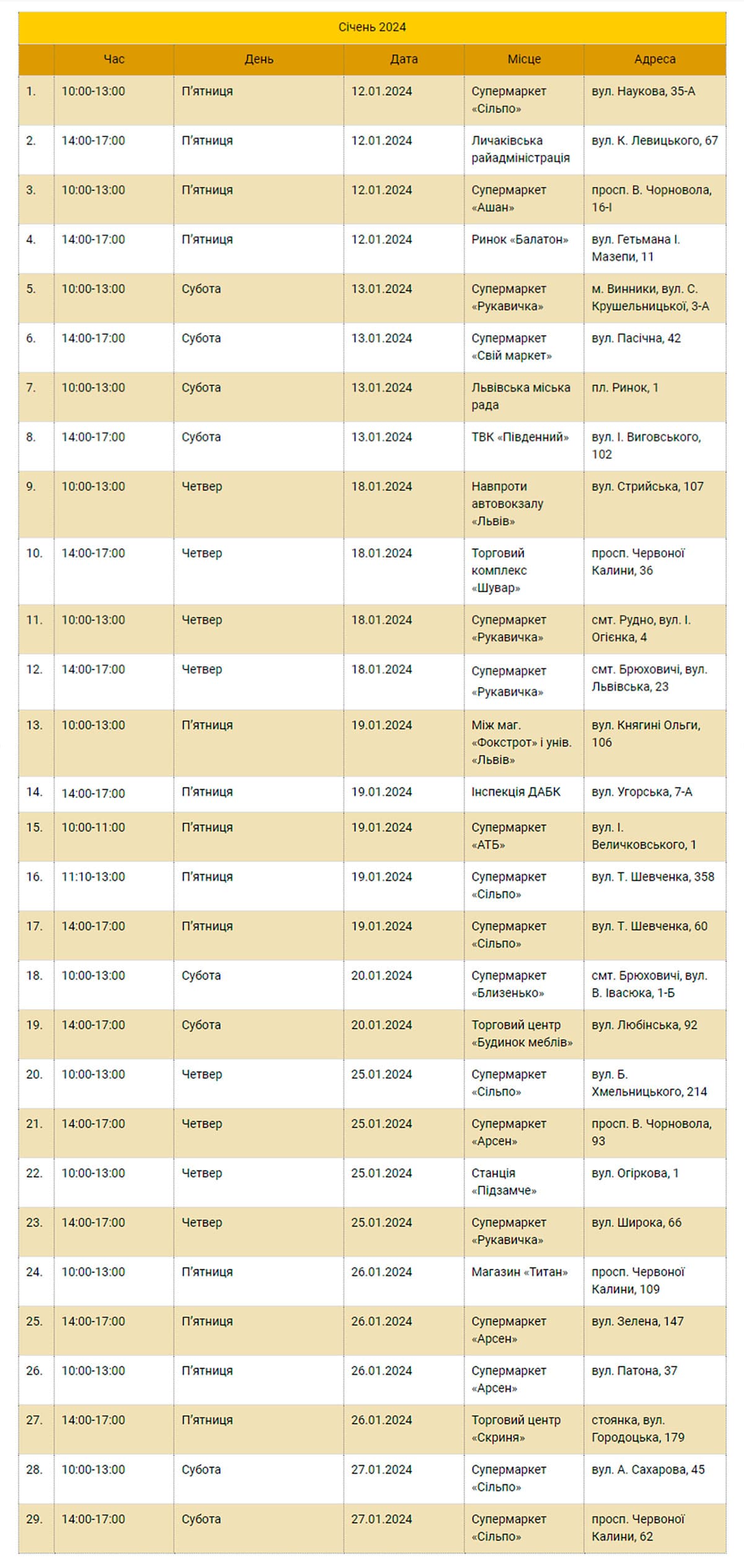 У Львові оприлюднили графік мобільних пунктів збору відпрацьованих люмінісцентних ламп, термометрів і батарейок на січень 2024 року.