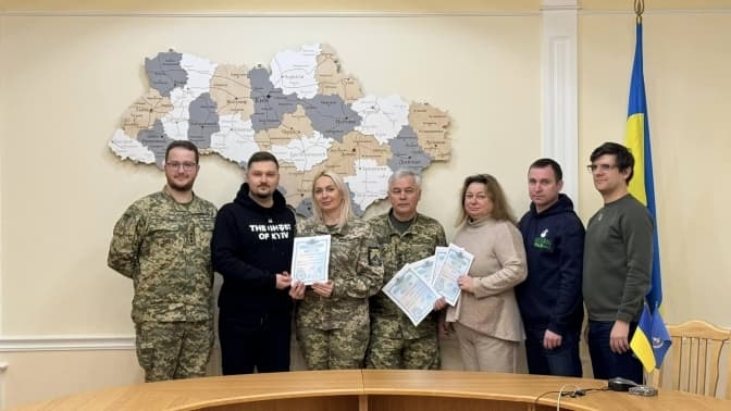 Офіційна церемонія передачі сертифікатів відбулася в офісі УКРНОІВІ за участі його голови Олени Орлюк, голови ГО "Захисники Неба" Олександра Вариводи, командувача ПВК “Центр” Героя України генерал-лейтенанта Анатолія Кривоножка, начальника служби зв'язків з громадськістю ПВК “Центр” підполковника Любові Киналь, офіцера ПВК "Центр", старшого лейтенанта Олександра Сніжка та представників держустанови.