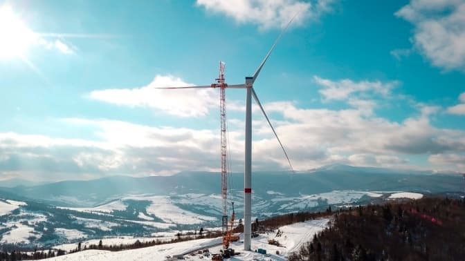 Та: На межі Львівщини встановили вітряк, який стане частиною нової вітрової електростанції. Встановлена вітротурбіна має потужність у 4.8 МВт.