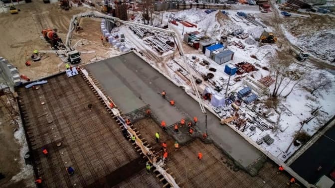 Нині за повідомленням підрядника робіт — компанії «Автомагістраль Південь» — триває заливка монолітної плити естакади. Підрядник називає це черговою важливою подією. Будівельники вже влаштували 125-метрову монолітну плиту шляхопроводу й використали на це майже 900 кубометрів бетону.