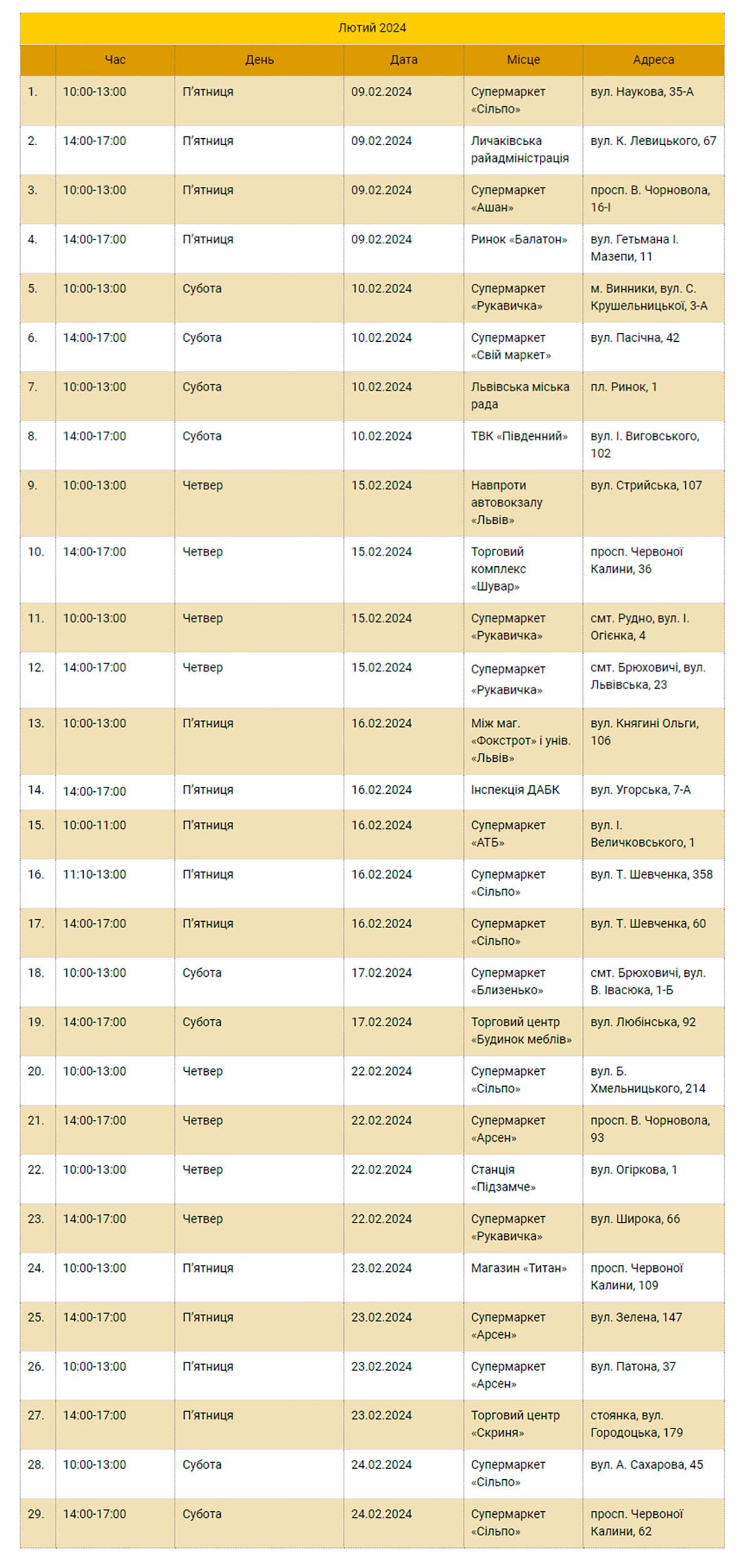 У Львові оприлюднили графік мобільних пунктів збору відпрацьованих люмінісцентних ламп, термометрів і батарейок. Їх можна здати від 9 по 24 лютого.