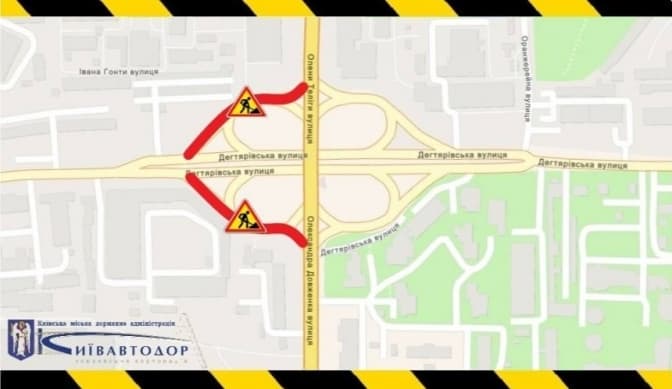 Із 10 лютого до 10 березня у столиці перекриють рух транспорту ділянкою розв’язки на перетині вул. Дегтярівської та Олександра Довженка. Про цеповідомляєкомунальна корпорація «Київавтодор».