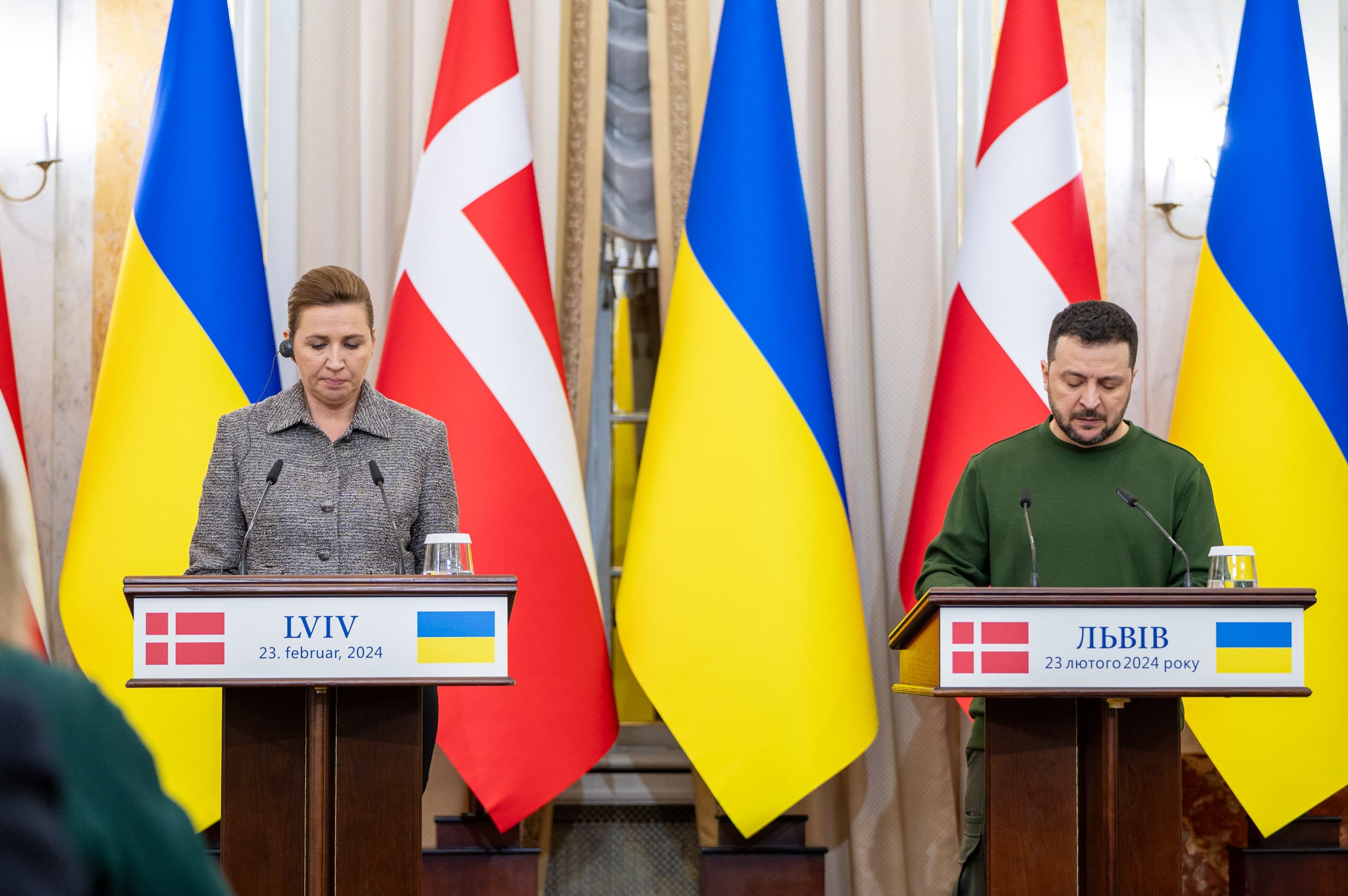 У п’ятницю, 23 лютого, президент України Володимир Зеленський прибув до Львова, де зустрівся з прем’єр-міністеркою Данії Метте Фредеріксен. Під час зустрічі Україна та Данія підписали двосторонню угоду про гарантії безпеки на наступні 10 років – це гарантії, які вже працюють і будуть працювати до вступу України в НАТО, інформує Tvoemisto.tv.