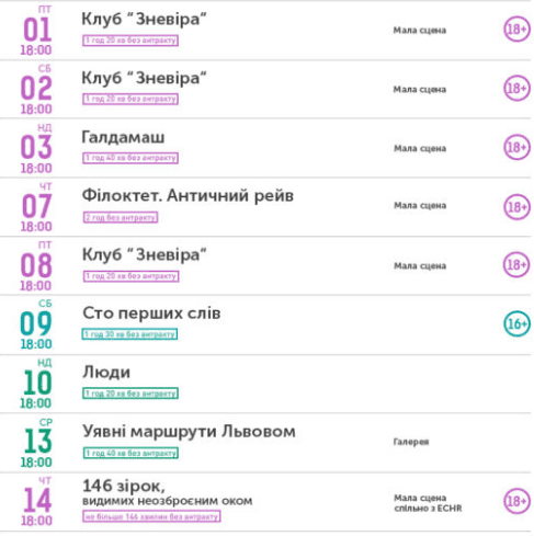 Афішу театру ОКО можна переглянути за посиланням.
