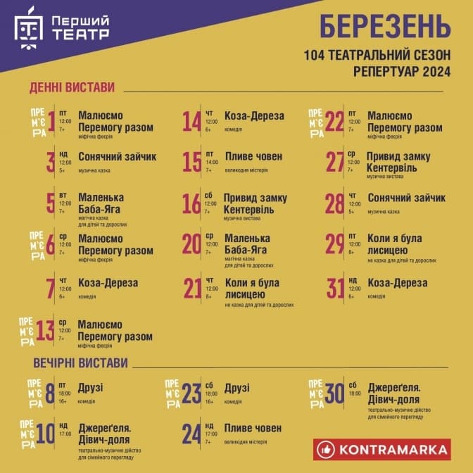 Афішу театру імені Марії Заньковецької можна переглянути на сайті.