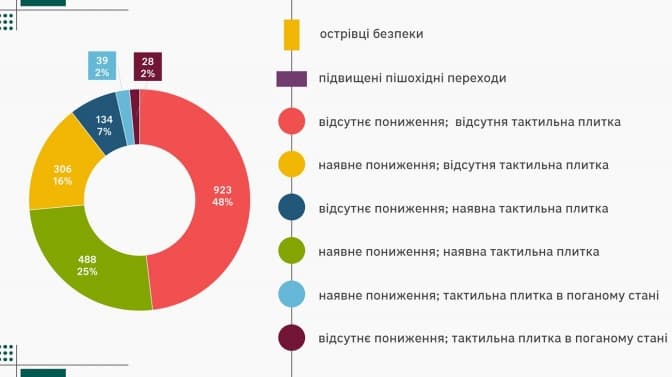 Студенти виявили, що лише 25% пішохідних переходів на зазначеній території відповідають сучасним вимогам інклюзивності. 27% переходів є лише частково доступними і потребують усунення недоліків. А 48% взагалі не відповідають чинним нормам.