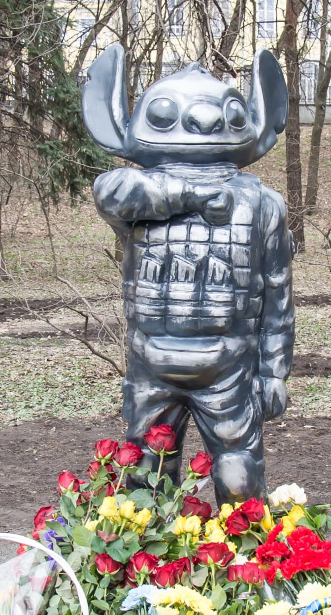 Скульптуру виконано у вигляді військового з головою мультиплікаційного персонажа Стіча. Побратими згадують, що Ігор постійно носив із собою таку фігурку. Коли знайшли тіло, вона була єдиним, що лишилося неушкодженим, повідомляють в КНУ. Автори скульптури Остап Ковальчук і Олексій Пергаменщик.