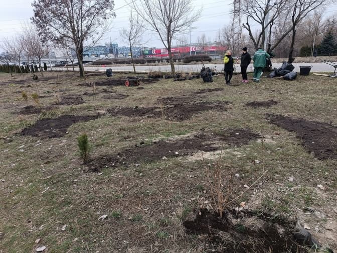 Біля поховань висадили 350 кущів і дерев, а також 75 багаторічних квітів. Рослини надало КП УЗН Оболонського району, яке мало надлишок власного посадкового матеріалу з теплиці. Таким чином рослини не довелося купувати.