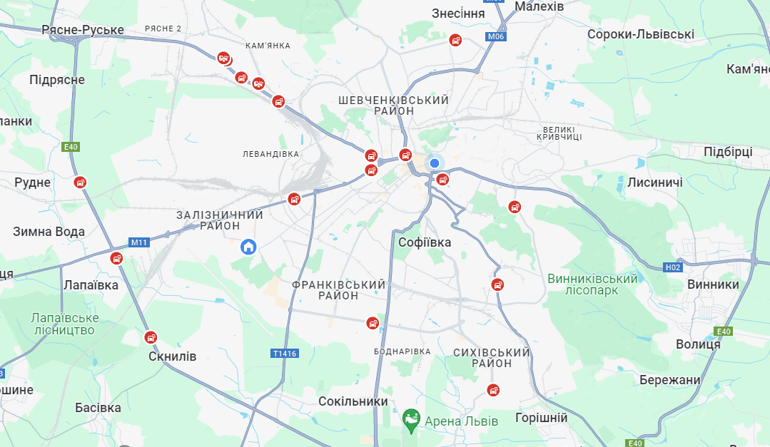 Згідно з даними Google maps, оминати також варто вулиці Зелену, Пасічну, Стрийську, Пекарську та Драгана. Також рекомендуємо оминати приміські дороги такі як кільцеві трасу в районі с. Сокільники та автошлях Т-1416.